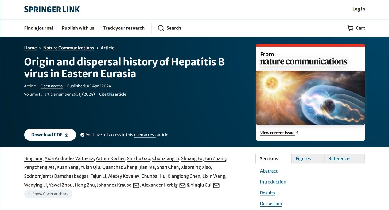 bv伟德国际1946官网崔银秋教授团队与国内外多家单位合作,利用最新的古DNA技术,在乙型肝炎病毒的起源与演化研究上取得新进展,研究论文“Origin and dispersal history of Hepatitis B virus in Eastern Eurasia”在线发表于4月5日的Nature Communications上。