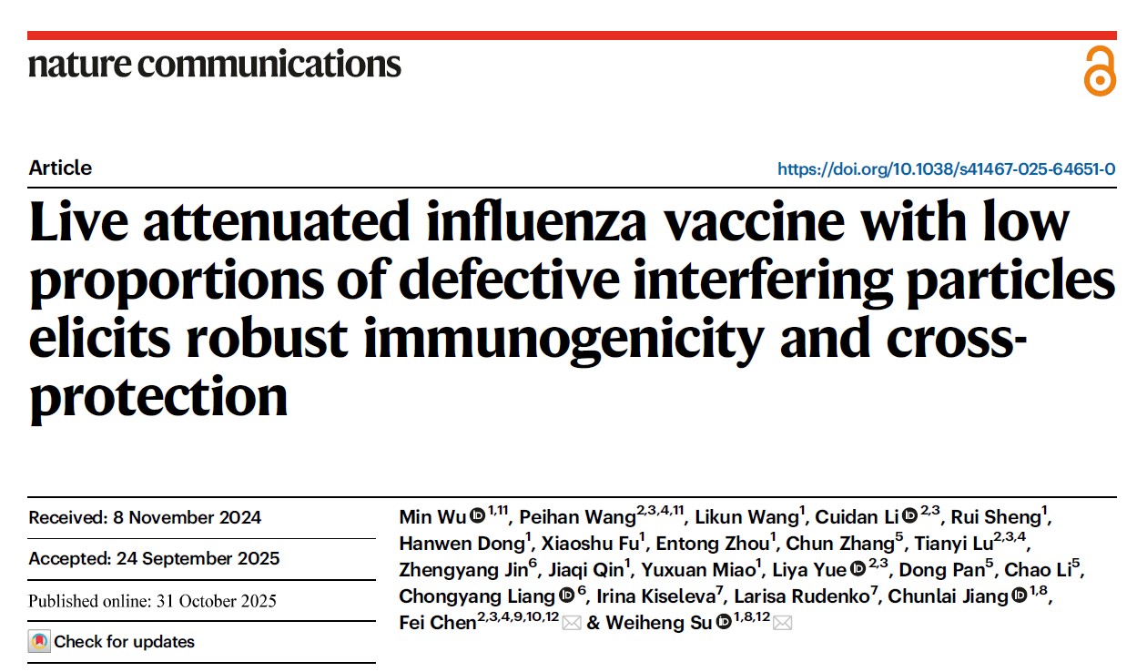 bv伟德国际1946官网艾滋病疫苗国家工程实验室苏维恒教授团队与bv伟德国际1946官网北京基因组研究所陈非研究员团队合作,创新性地开发了降低DIPs含量的LAIV。该疫苗不仅具有上呼吸道复制优势,还能够增加抗原提呈,能够诱导相比传统LAIV和灭活流感疫苗显著增强的免疫原性、广谱中和活性与体内交叉保护能力,同时安全性良好。该研究为增加流感疫苗保护效力的实践提供了新策略。研究成果于2025年10月31日在国际学术期刊Nature Communications上正式发表。