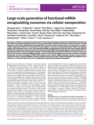 1月18日,《Nature Biomedical Engineering》杂志以封面文章形式刊登了bv伟德国际1946官网滕乐生教授与美国俄亥俄州立大学L. James Lee教授、德州大学安德森癌症中心Betty Y. S. Kim教授合作论文《Large-scale generation of functional mRNA encapsulating exosomes via cellular nanoporation》(Nature Biomedical Engineering,4,69-83:(2020))(图1)