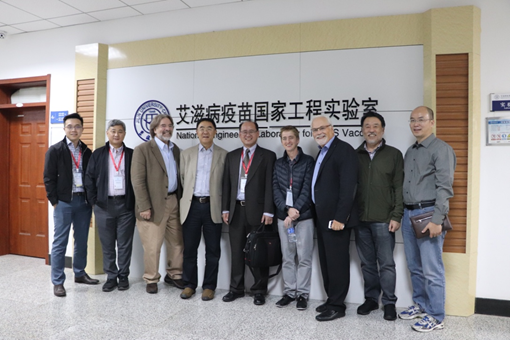 参观艾滋病国家工程实验室期间,专家代表与实验室主任高峰教授(右五)合影