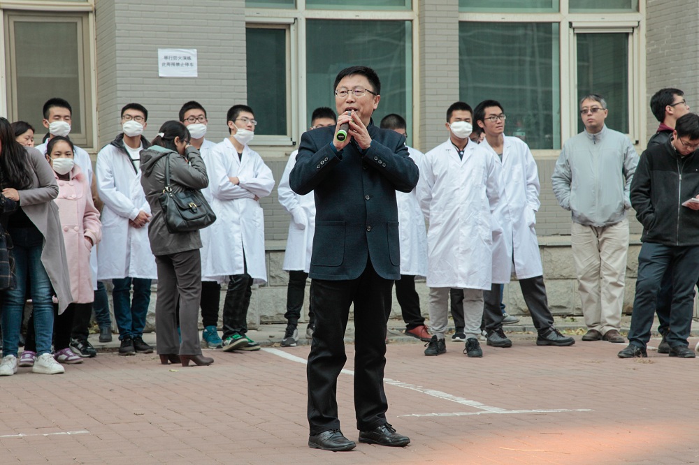 消防演习于下午13点30分伴随着报警器的“突然”响起,生命科学楼和实验楼滚滚浓烟正式开始。在实验室工作的本科生、研究生和教师近千人,立刻放下手中工作,在相关安全负责人的指挥下,迅速关闭电源,拿出毛巾、口罩沾水唔上口鼻,有序的撤离实验室,并沿消防指示灯指示方向迅速下楼、在就近防火门通道到达安全地带。随后各班班长、各楼层负责人清点人数,并层层汇报。在发现有被困人员时,总指挥派人前去救助,并安全救出。