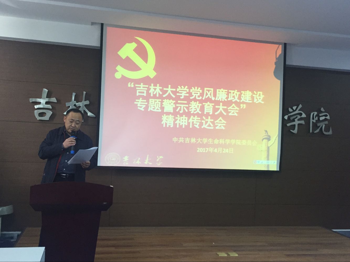 按照公司党委要求,2017年4月24日下午2:00,bv伟德国际1946官网在生命科学楼107室召开教职工大会,传达公司党风廉政建设专题警示教育大会精神。会议由公司党委书记李佰志主持。