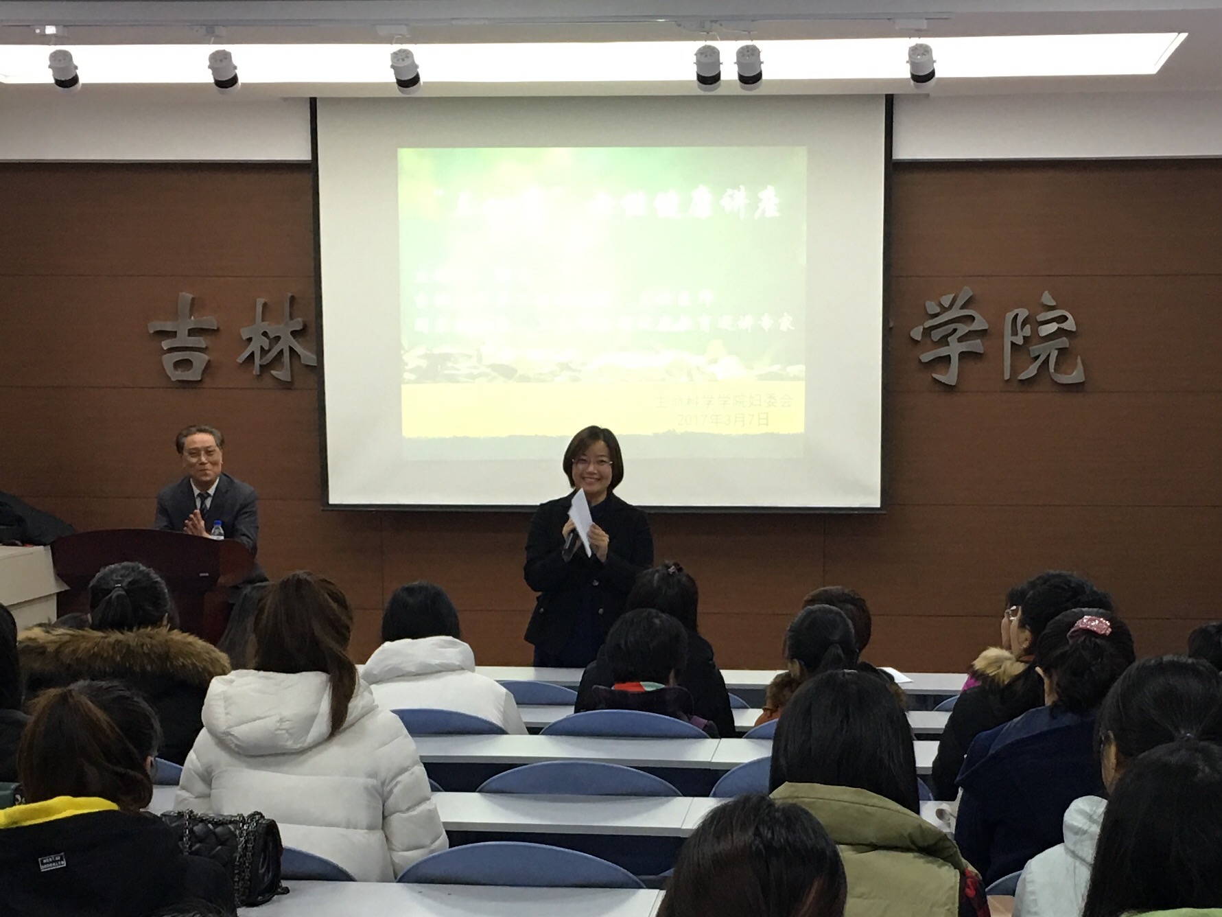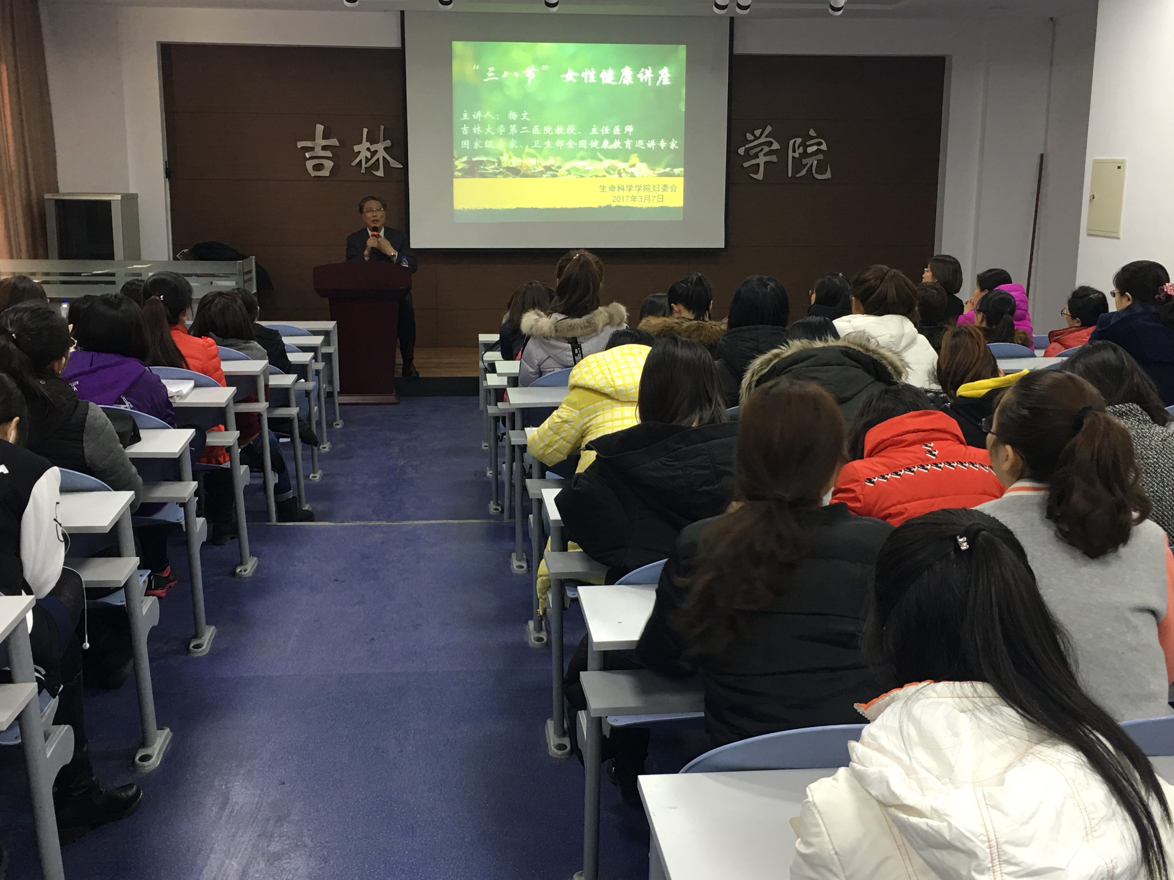 为关爱公司女性师生的身心健康,增强女性的健康意识和自我保健能力,并帮助大家养成良好的生活方式,“三八”国际妇女节到来之际,2017年3月7日下午一点半,在bv伟德国际1946官网107教室,bv伟德国际1946官网妇委会特邀bv伟德国际1946第二医院杨文教授为公司女性师生做了一场专业而生动的女性健康专题讲座,得到了参会师生的广泛称赞。本次讲座由妇委会主任刘丽慧主持。