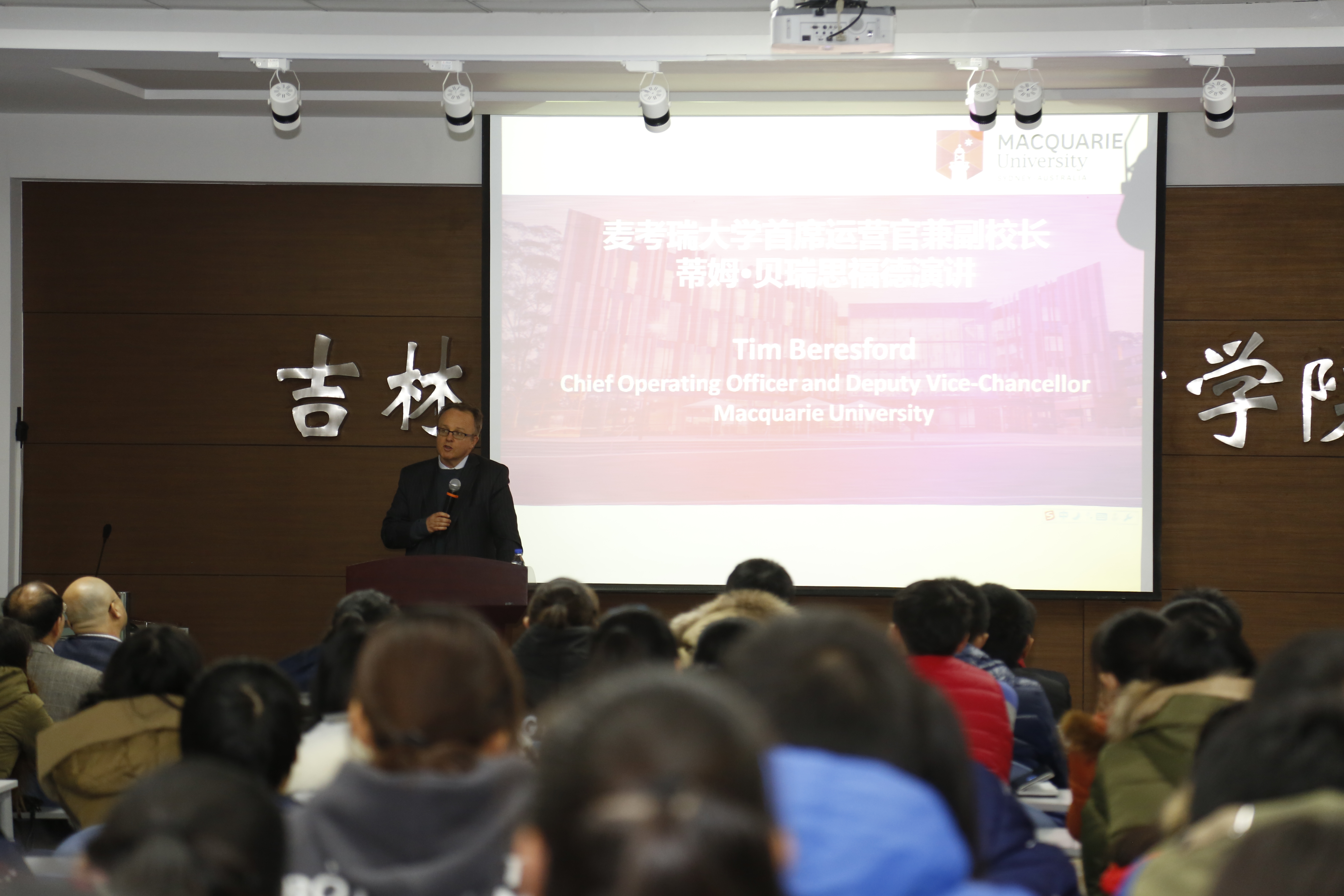 11月20—23日,bv伟德国际1946—麦考瑞大学—吉森大学交流周在bv伟德国际1946成功举办。11月22日麦考瑞大学首席运营官兼副董事长蒂姆•贝瑞斯福德一行6人访问公司,麦考瑞大学首席运营官兼副董事长蒂姆•贝瑞斯福德在bv伟德国际1946官网报告厅做了精彩的报告。蒂姆·贝瑞斯福德是麦考瑞大学首席运营官兼副董事长,负责全面监管公司工作,包括国际员工的招生、财务管理、人力资源等。公司国际合作与交流处副处长部铁军、生命科学公司党委副书记刘丽慧、副经理姜春来出席报告会。bv伟德国际1946官网部分本科生、研究生及其他公司的师生参加了此次活动,本次报告由公司副经理付学奇主持。