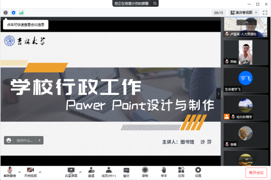 为进一步提升bv伟德国际1946官网行政管理干部业务工作能力,努力打造“一流”行政管理干部队伍,有力推动服务生物学团队建设和公司发展,6月4日晚,公司组织全院行政管理干部参加了由公司党委办公室、董事长办公室联合举办的“机关管理服务效能提升微课堂”。线上学习了由公司图书馆信息素养课堂主讲教师沙莎讲授的“公司行政工作Power Point设计与制作”主题微课。