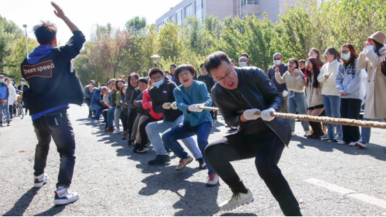 比赛由公司国家级教学名师滕利荣教授担任裁判员,随着他的一声哨响,比赛正式开始。但见比赛场上,参赛队员们奋勇争先、斗志昂扬,拉拉队员激情呐喊、活力四射。全院教职工以极大的热情参与到了此次活动当中,一根长长的拔河绳凝聚了每一位参赛教职工的力量与信念,牵动着在场观众的热情与渴望。拔河是团体赛事,比赛中处处彰显着“团结就是力量”与队伍不服输的品格。人挨人,脚靠脚,咬紧的牙关,攥红的双手,无不透露出不屈的意志,一次次地发力、后移,一声声地呐喊、助威,激烈的角逐扣人心弦。