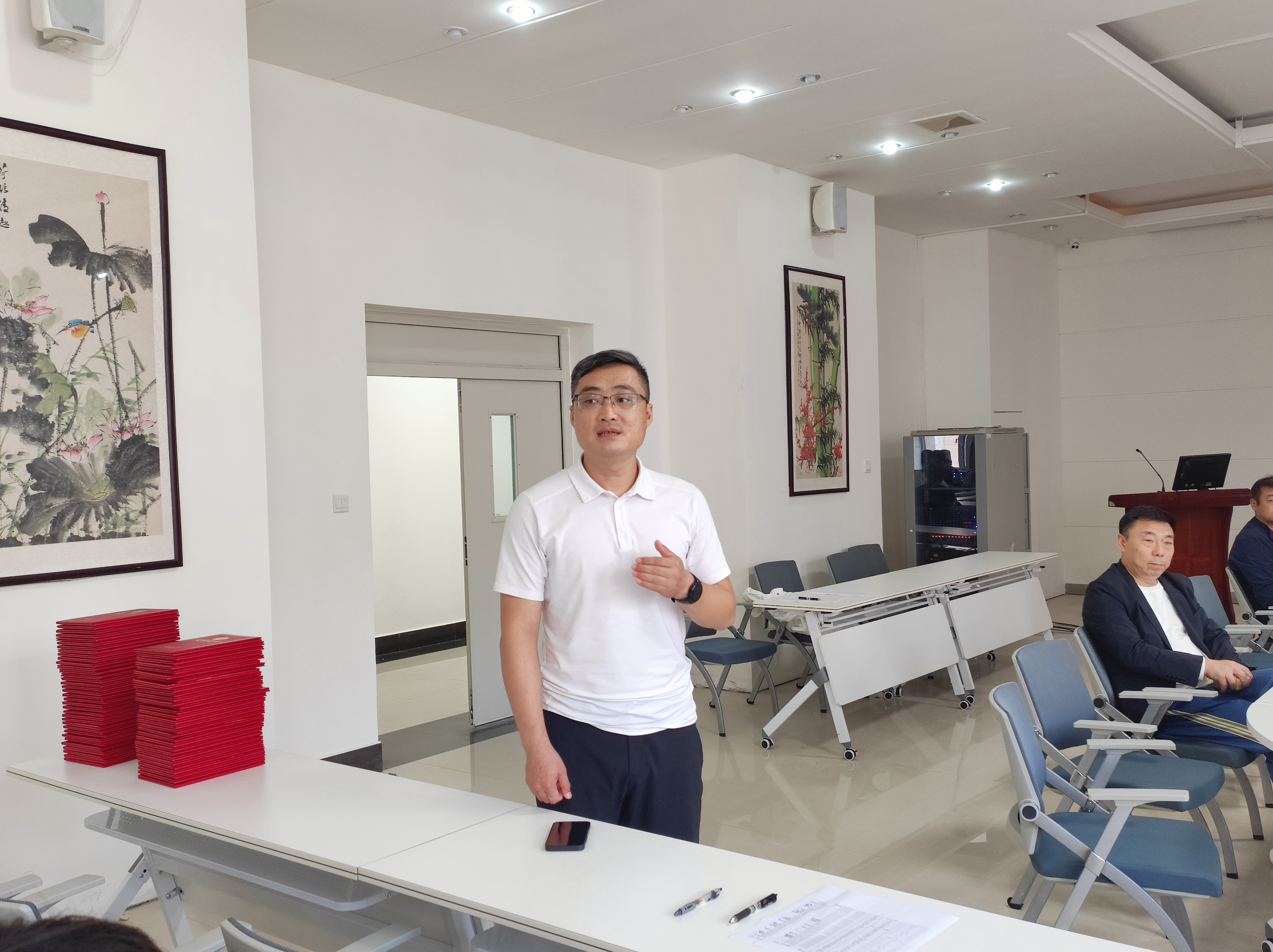聘任仪式结束后,公司举行2023-2024学年实验室安全协管员培训大会,由公司环安督查专家温少忠为同学们做培训。他以高校实验室的事故案例为切入点,分析实验室常见安全隐患,就如何提升实验安全意识,规范实验安全行为,排查实验室安全隐患,防范实验室安全事故等方面提出了一系列工作建议。
