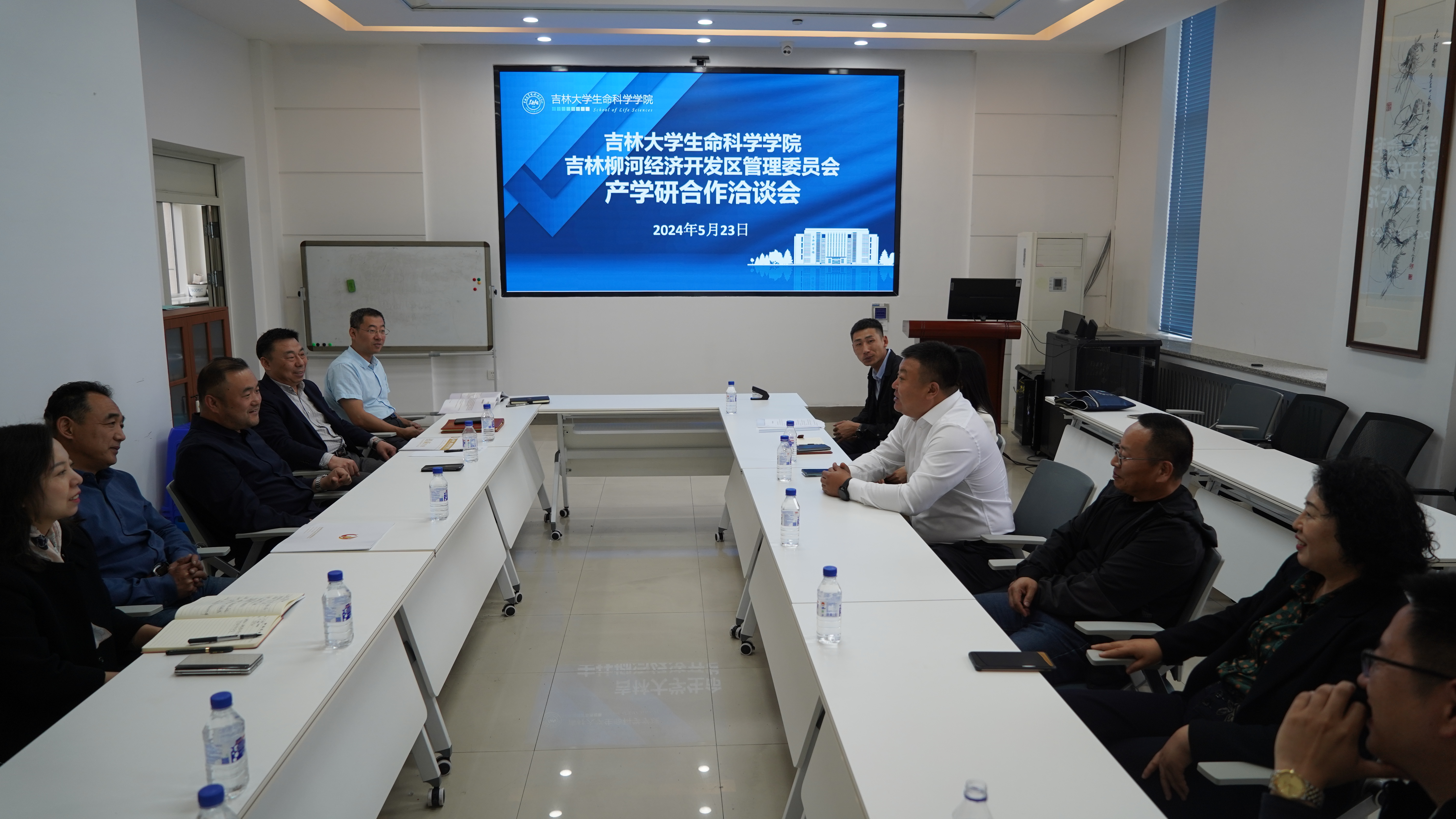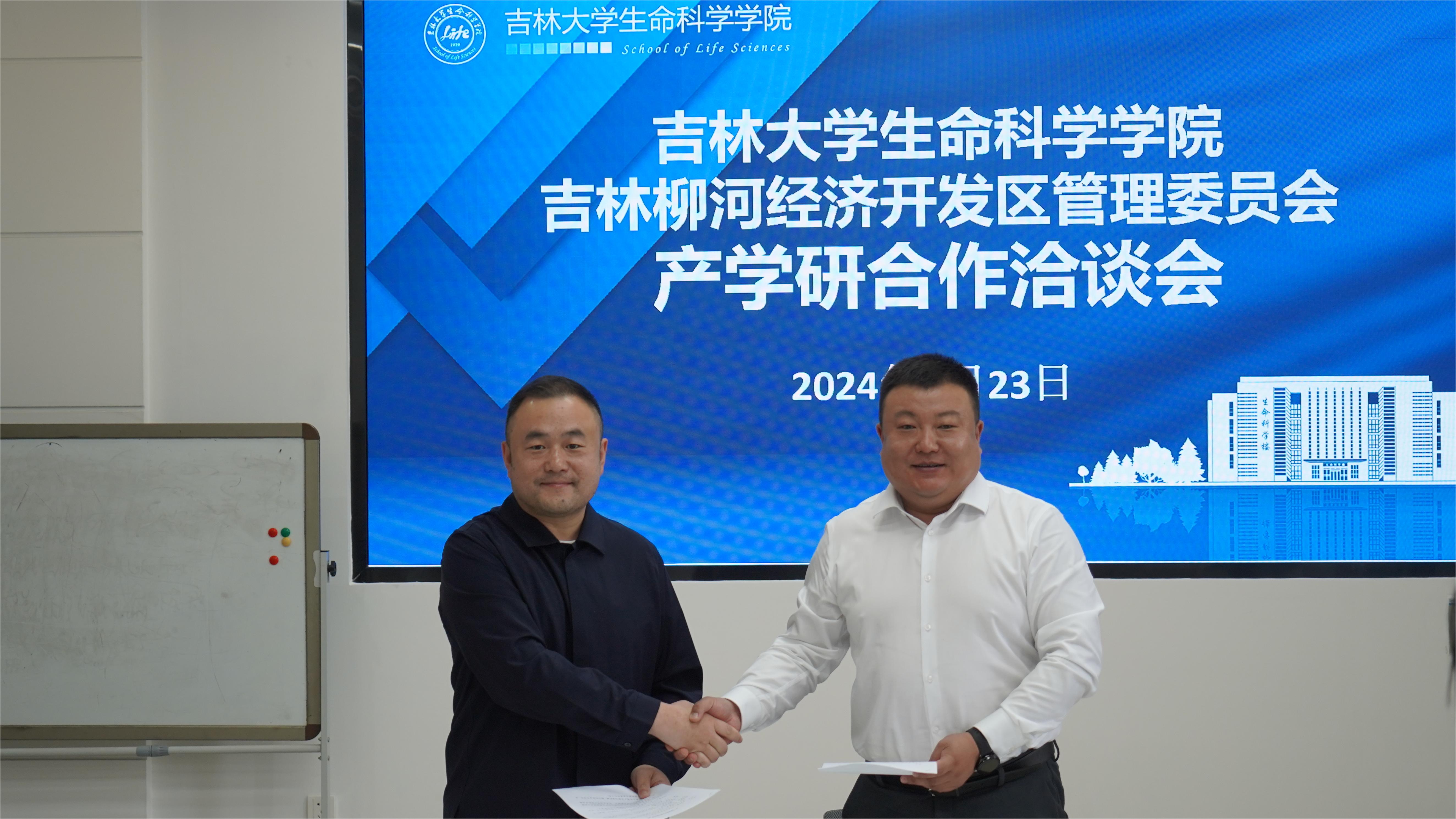吉林柳河经济开发区经合局局长刘博、发改局局长刘龙玉、经合局职员曲鹏、吉林龙泰制药股份有限公司副总经理刘晓青、钓鱼台医药集团吉林天强制药有限公司项目主任许绍英;生命科学公司党委副书记林相友、副经理郑琳,bv伟德国际1946官网生物化学与分子生物学系主任邢述教授、分子酶学工程教育部重点实验室张作明教授参加会议。