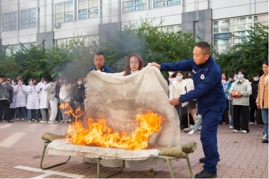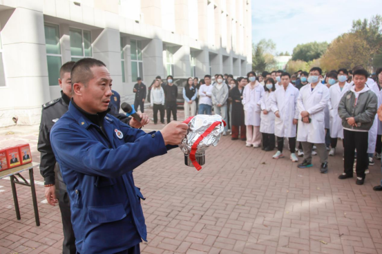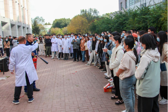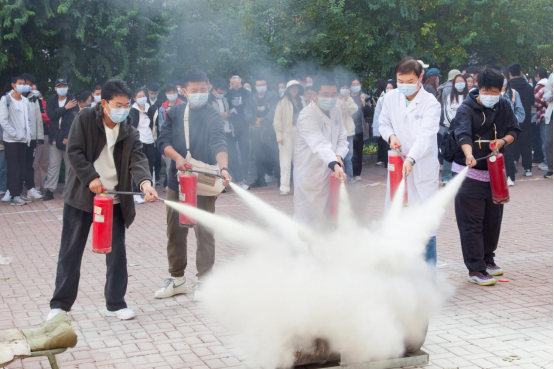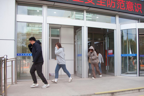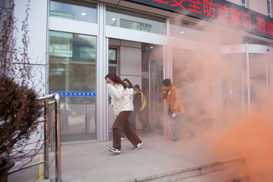 13时30分,“火警信号”发出,各楼层迅速组织师生进行疏散,并按照预案进行火灾报警、人员疏散自救、抢救伤员、扑救初级火灾,全体师生在应急疏散中积极配合,听从指挥;各岗位人员各司其职、各尽其责、分工明确、有序地完成了疏散活动。在灭火演练过程中,保卫处消防科周春雨详细介绍了消防自救面罩、各种类型灭火器和灭火毯的使用方法及注意事项,参与师生均能够遵守操作规程正确实施演练活动。