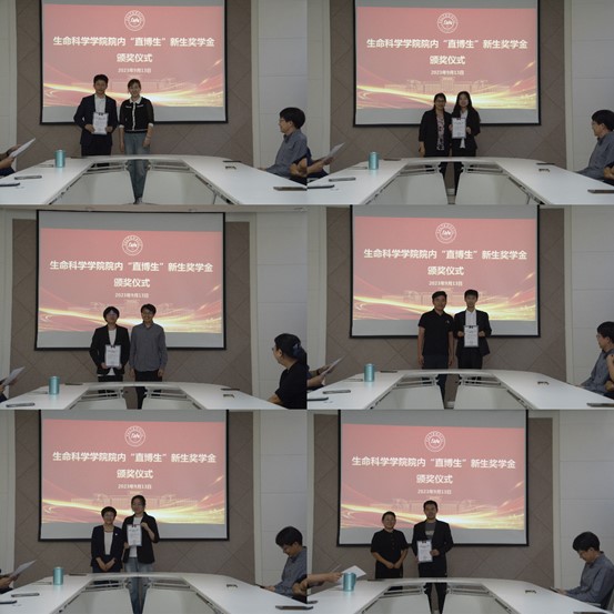 研究生导师代表为14名获得奖学金的研究生同学颁发证书,并与获奖同学合影留念。