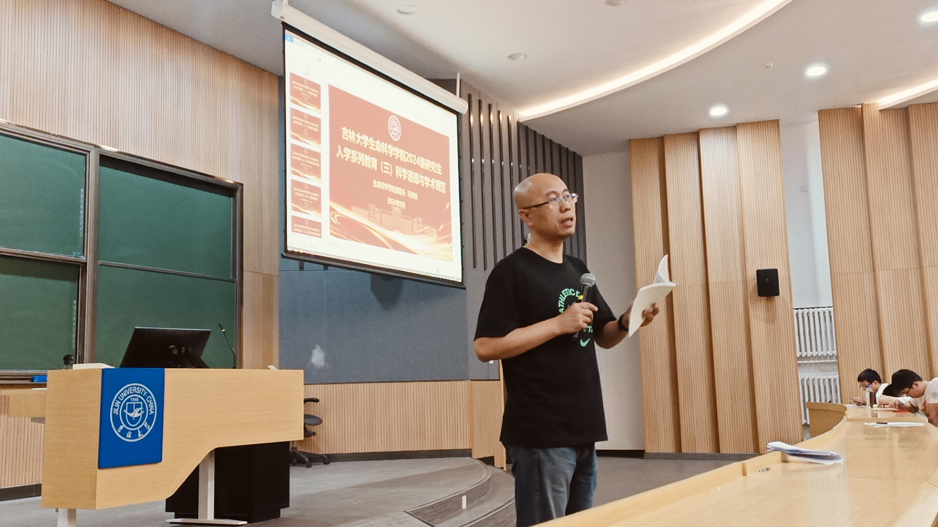 讲座伊始,马老师深刻阐述了科学道德与学风建设在研究生教育中的重要性,为新生们剖析了科学道德的内涵和要求。他指出,研究生在科研过程中要坚守诚信原则,杜绝学术不端行为,如抄袭、剽窃、伪造数据等。同时鼓励新生们要勇于创新、追求卓越,以严谨的态度和扎实的工作开展科学研究。最后他强调,科学道德是科研工作者的立身之本,良好的学风是推动学术进步的关键。在学风建设方面,马老师向同学们阐释了勤奋学习、刻苦钻研的重要性。鼓励新生们积极参与学术交流活动,拓宽学术视野,提高自身的科研能力。同时要养成良好的学习习惯和科研方法,注重团队合作,共同推动生物学科的发展。