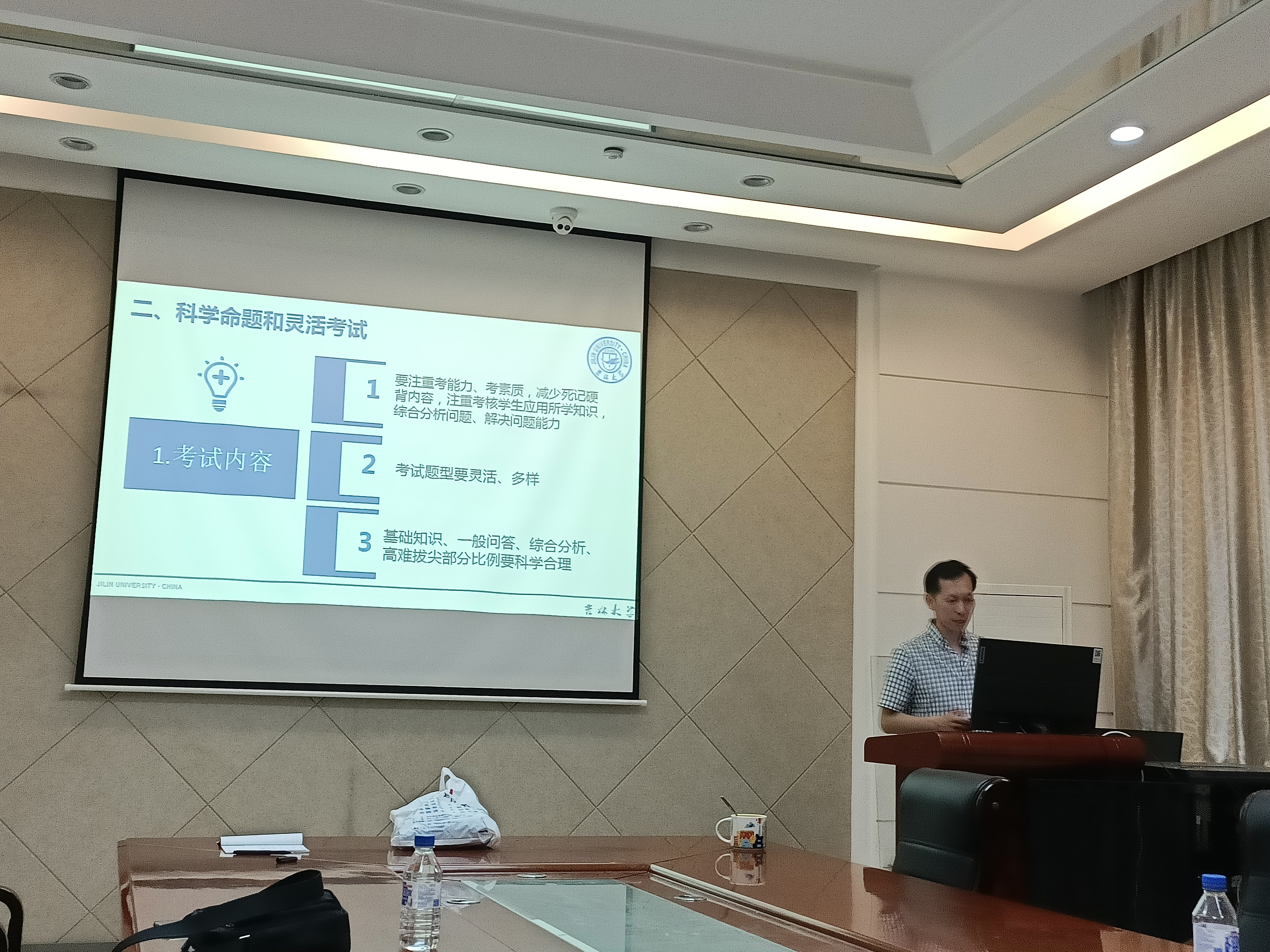 公司教学办公室主任刘成柏首先以新修订的《bv伟德国际1946本科课程考核管理办法》(校教字﹝2020﹞123号)为指导,从考前工作布置及教育动员、科学命题和灵活考试、考务组织安排、考风考纪、阅卷工作等五个环节,对考试相关工作做了详细、具体的讲解,并对考试题型、试题内容及考核方式、考试改革的要求和建议做了全面地阐述。按照公司要求,对监考、巡考的工作提出明确要求,在本次期末考试中要遵循“预防在先,惩戒在后”的原则,做到严肃考纪、端正考风,严禁出现违纪、作弊行为;要求阅卷工作公平、公正且及时,从而确保考试平稳、诚信、公平地进行。校级教学督导专家杨德胜以优秀试卷评阅案例为基,充分详实地讲解了试卷设计、题型结构、评阅规则、赋分要求、试卷复核、成绩分布与登录以及试卷分析填写等方面的内容,重点强调了历年来公司组织试卷复查中发现的典型问题,提倡阅卷科学规范,成绩公平公正。员工工作办公室主任张春阳重点强调了公司对员工关于加强考风考纪的具体要求,并明确了考场违纪处理的规则、方式以及注意事项。