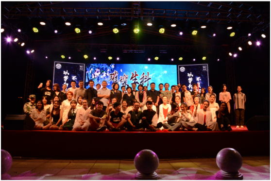 晚会在古典乐器演奏中拉开序幕。诗朗诵《不说再见》,表达了对老员工活的眷恋和不舍。舞蹈、歌曲联唱、ATM乐队,专业化水平的演出,充分展示了生科学子的艺术天分,为今天的夜晚点亮了璀璨的星光。相声《有点交情》、话剧《同学聚会》、情景剧《回眸四年》、插卡打诨,让人在捧腹中回想起了四年老员工活的点点滴滴。神秘助演嘉宾,各位老师的登场亮相,更将现场的晚会推向了一轮又一轮的高潮。最后整台晚会在“我的未来我做主”的歌声中画上了圆满的句号。