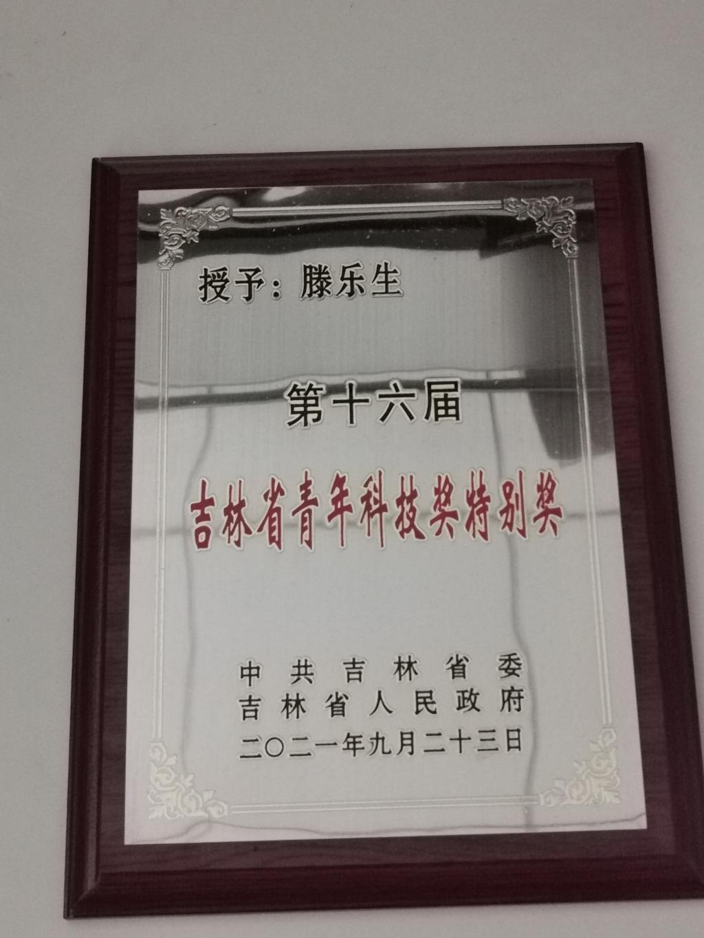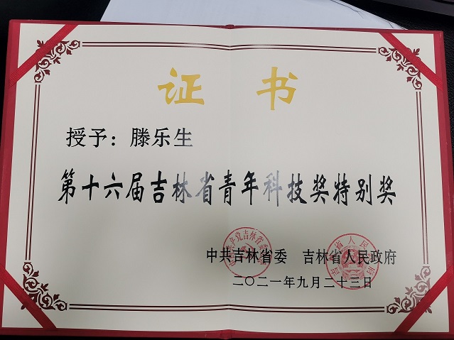 公司滕乐生教授喜获第十六届吉林省青年科技奖特别奖