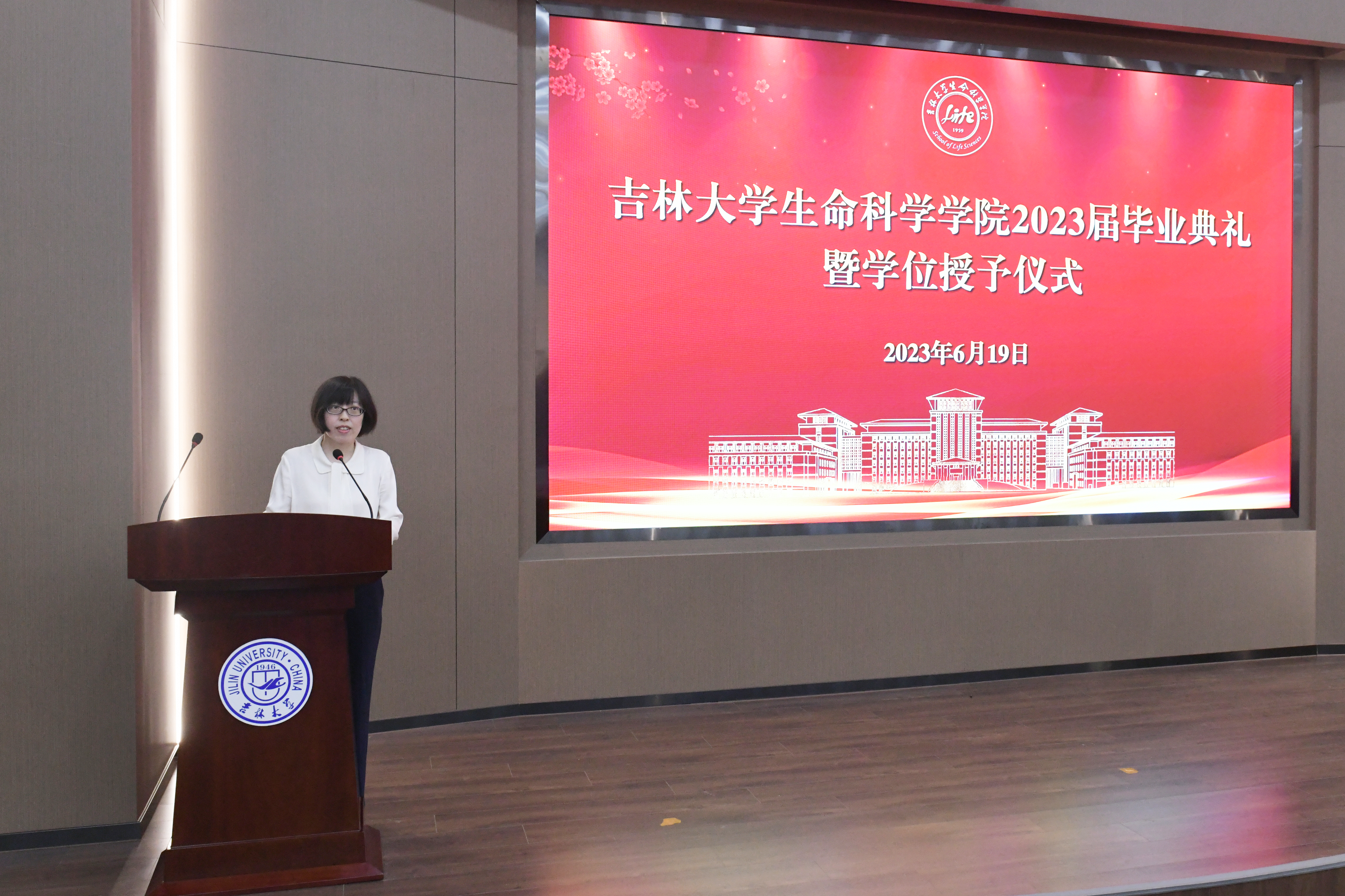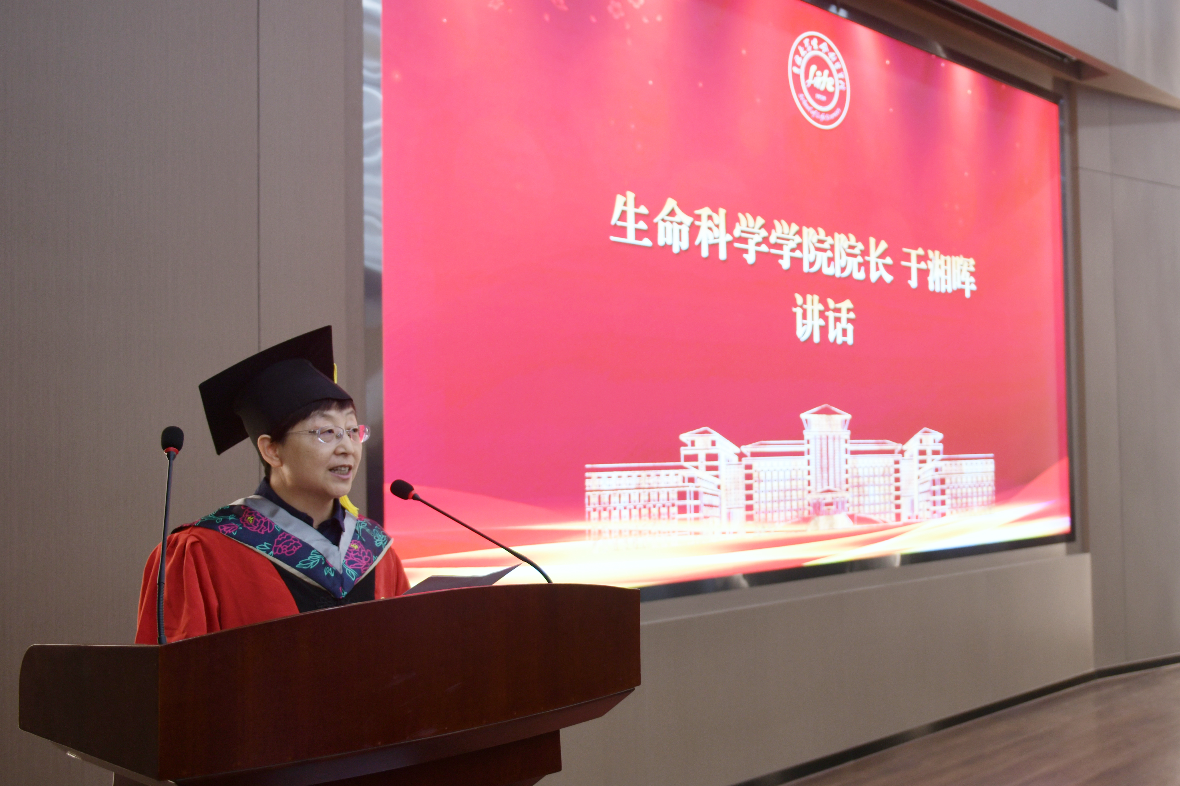 最后,于湘晖经理向圆满完成学业、即将踏入人生新征程的全体毕业生表示祝贺。在临别之际,她寄语同学们:一是要拥有家国情怀与科学人生。希望同学们能将个人的成长融入于国家学科发展对于人才的迫切需求之中,融入于国家富强、民族复兴的发展进程之中,面向国家重大需求、面向人民生命健康,以实际行动与科学素养为建设教育强国、人才强国、健康中国、创新中国贡献青年力量。二是要赓续吉大精神与生科血脉。要有不囿于一隅的胆气,要有不惑于未知的底气,要有不困于失败的锐气,真正做坚定不移地勇攀高峰、自强不息地跋涉前行的吉大人;做既能坐的住冷板凳,又能保持着赤子心,既能吃得住科研的苦,又能欣赏科研的美,既有传承,又要开拓的生科人。三是要持守发现美的眼睛与探索美的心灵。在解码生命奥秘的过程中领略更多生命和自然之美,在众声喧哗中激浊扬清,在时移世变中允中守直,既能守护灵魂的纯净,守卫人性的善良,以根植于内心的道德做一个发现光芒、散发光芒的人;也能守住独立的人格,守持求索的精神,以稳定于心的内核做一个自知、自信、自美、自励的人。