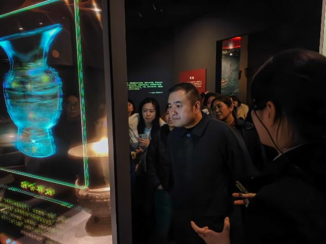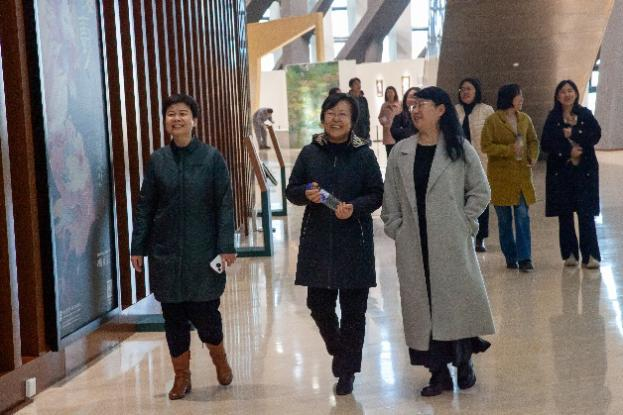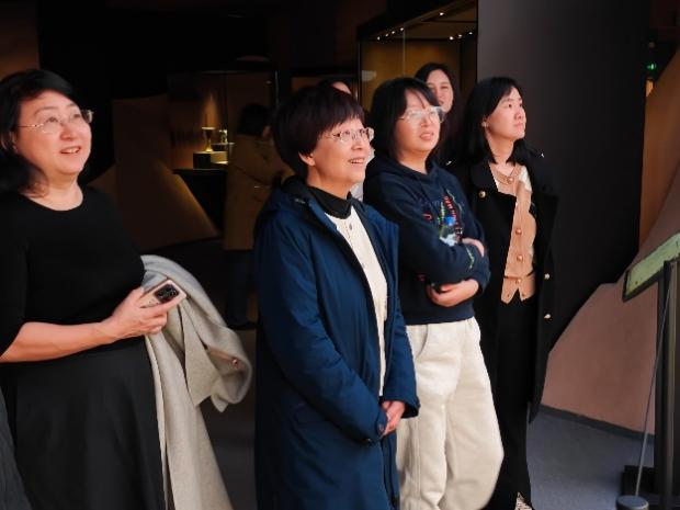 在博物馆讲解员的引导下,女教师们步入“吾道何之——精品书画展”,欣赏了从元代到近代的精品书画,观赏了齐白石等名师大家的作品,近距离、沉浸式欣赏到中国传统书画的独特魅力。行至“山海爵——青铜器展”,以《山海经》为引,聆听青铜器从商周至秦汉、从祭祀礼器到日常用器的转变。在“国色天工——中国传统技术与艺术展”内,以中国传统五色、传统制作技术与装饰艺术为主题,选取陶瓷器、玉器、青铜器、漆器等不同质地的140余件文物,从电影台词、武侠画面与文物故事融合中感受“色、相、技、艺”四个单元。在“春和景明——明清精品瓷器展”内,从唐代邢窑白瓷的素雅到明代青花缠枝莲纹梅瓶的繁丽,女教师们跟随讲解员提示,专注比对釉色窑变与纹饰布局的时代特征,感受中华文明的古老故事。