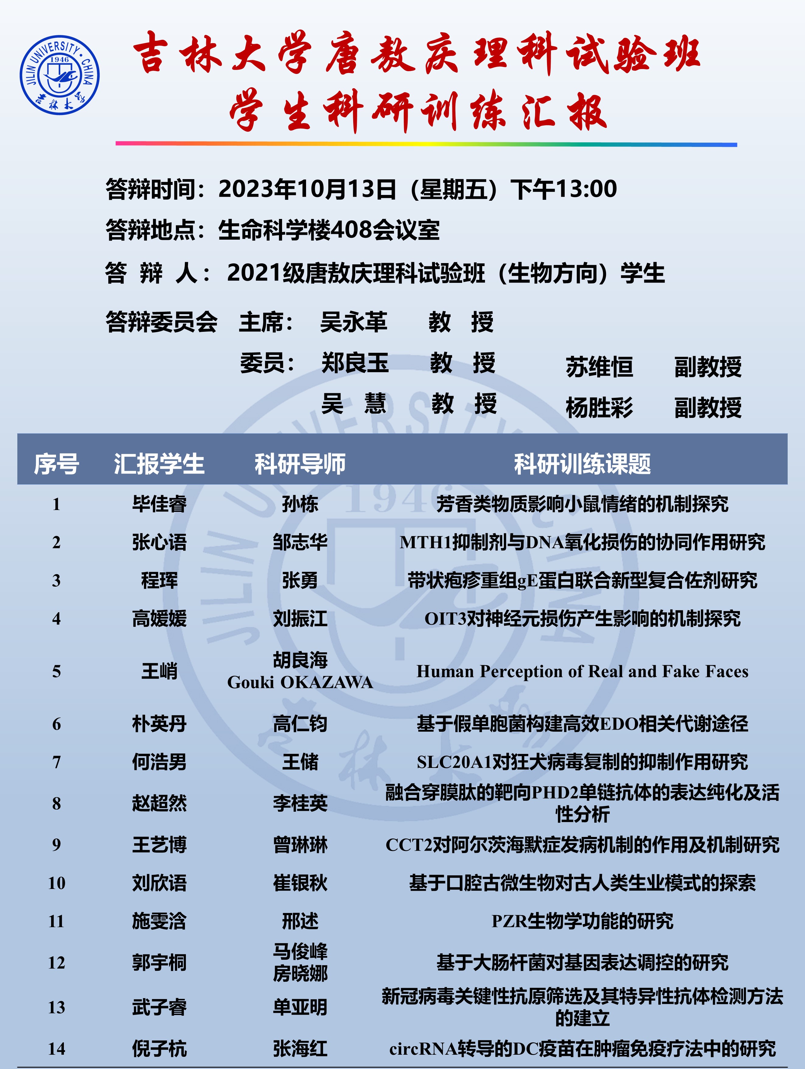 为提升唐敖庆理科试验班员工的科研素养,增强员工及科研导师之间的深入交流,bv伟德国际1946官网于10月13日下午组织开展了唐敖庆理科试验班生物方向(唐生班)拔尖员工科研训练进展汇报。此次汇报面向全校公开进行,汇报主体为2021级唐生班全体员工和2020级唐生班员工代表,邀请吴永革教授、郑良玉教授、吴慧教授、苏维恒副教授、杨胜彩副教授担任专家评委。bv伟德国际1946官网经理于湘晖教授、2021级唐生班科研导师、2022级唐生班员工以及公司唐生班学业导师团队出席汇报会,汇报会由副经理陈妍教授主持。
