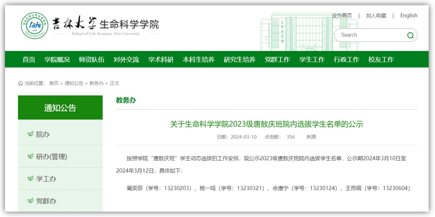 2024年3月10日,顺利完成bv伟德国际1946官网2023级唐敖庆班院内选拔工作。