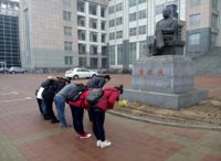 清明时节雨纷纷,却也淋不灭同学们对祭扫活动的热情。随着活动的开始,同学们在雨中悼念沉思,回忆着这一个又一个科学巨匠的贡献,感受他们坚持不懈,潜心钻研的精神的洗礼,随后在场的员工们向科学家们的雕像鞠躬致敬,并依次献上了满载内心崇拜与敬意的鲜花。