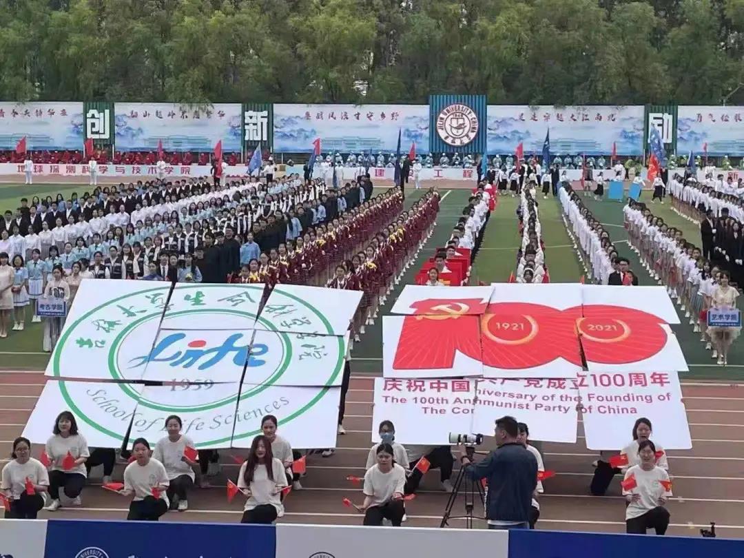 28日8时,运动会决赛正式拉开帷幕,公司运动员方队迈着整齐的步伐,伴随着激昂的乐曲向主席台走来。“科技引领,生命溯源。青春向党,献礼百年。”铿锵有力的口号喊出了生科学子奋勇争先的气势,同时也为中国共产党成立100周年献上了美好的祝福。