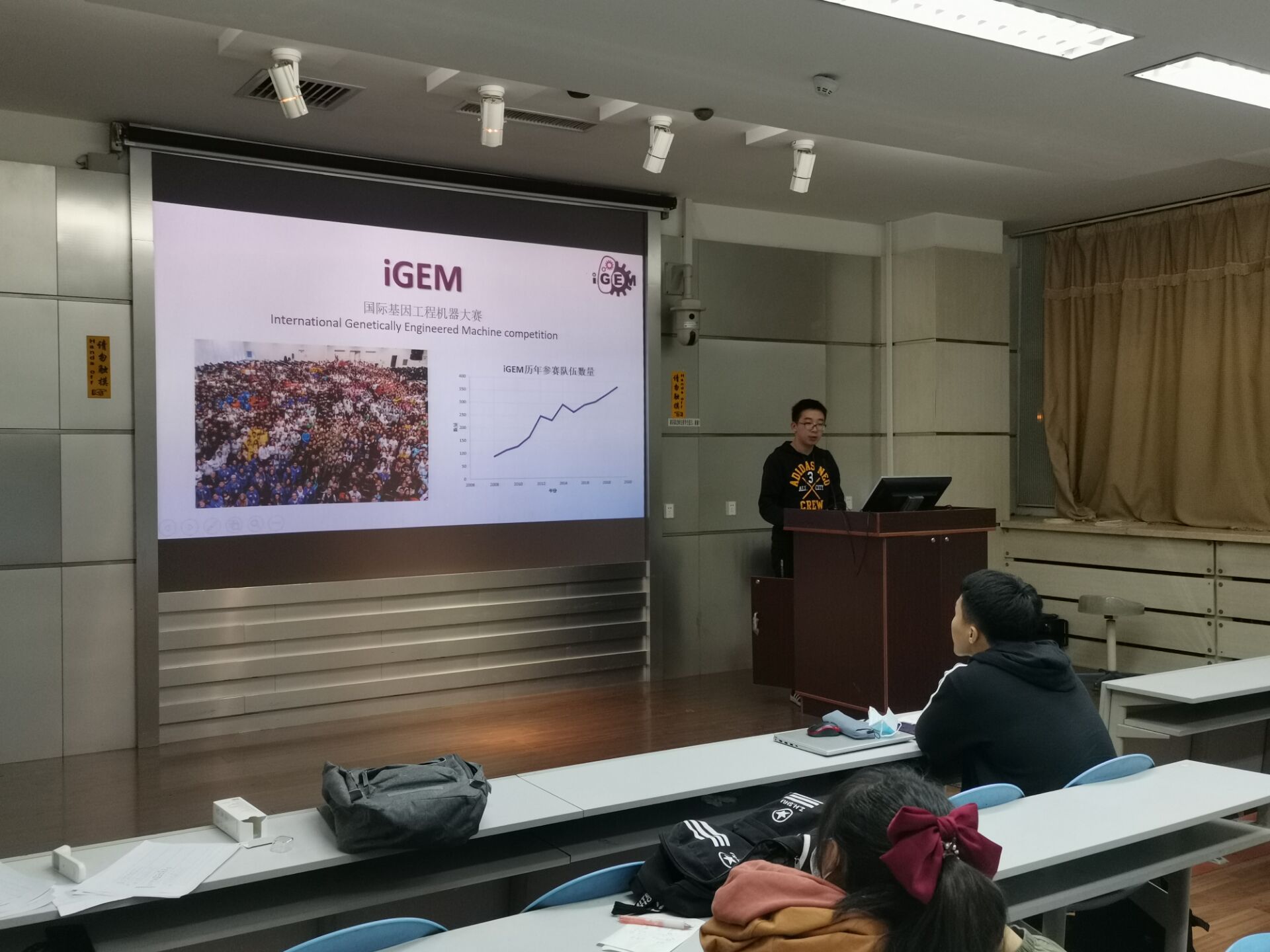 在本次交流会的现场,逯家辉老师对于同学们提出的各种问题做出了详细解答,2017级的几位学长学姐则详细介绍了自己的参赛经历,为大家分享经验。