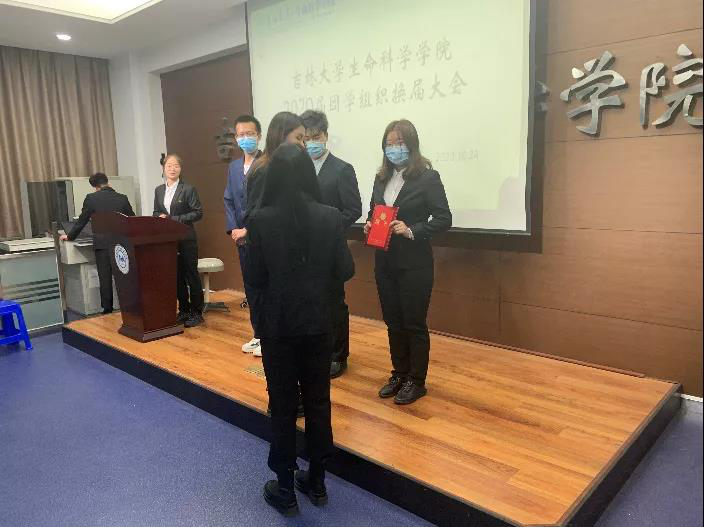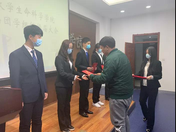大会在雄壮的国歌声中拉开帷幕。首先,于佳宁老师宣读2020届bv伟德国际1946官网团学联组织员工干部名单。接着,于佳宁老师、齐鹏老师、丁子芮老师分别为团学组织主要员工干部颁发聘书,并合影留念。