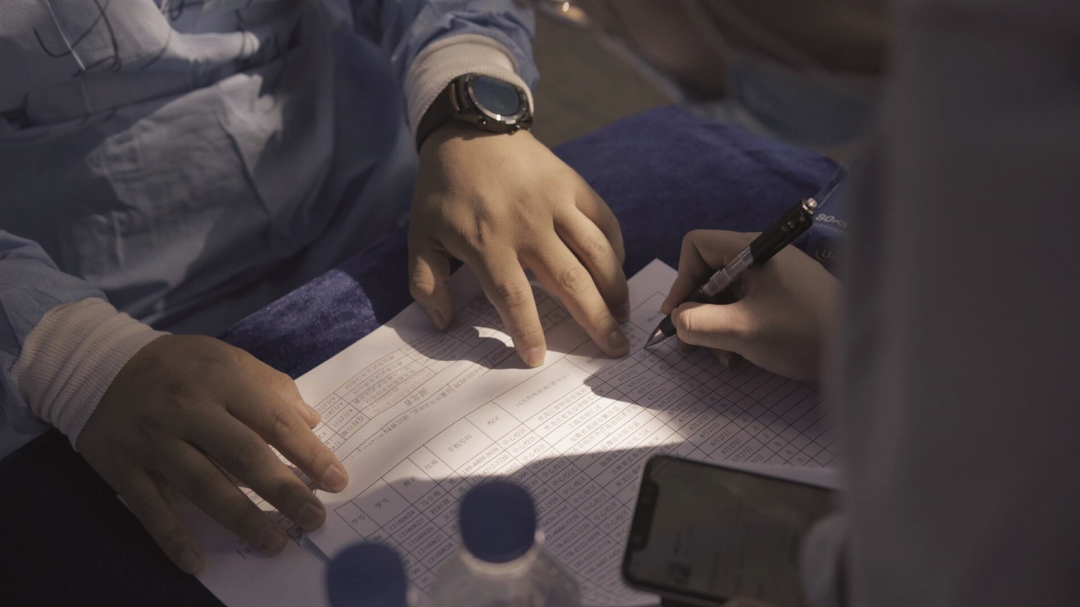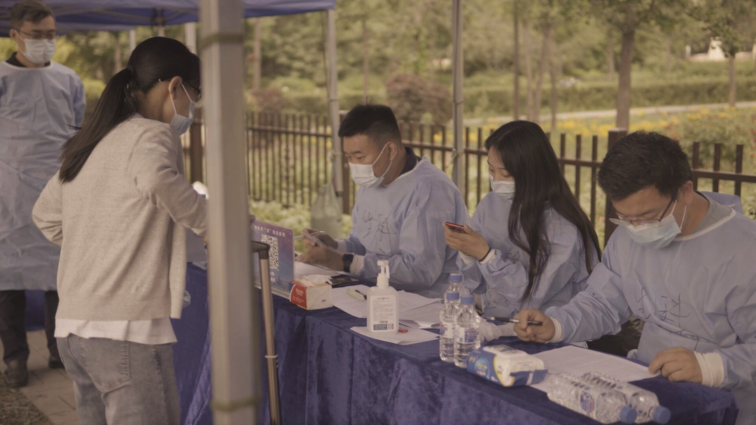 公司党委副书记崔帅、2016级辅导员马莹、2019级辅导员齐鹏、辅导员刘春天四位老师早早地就在北门搭起了接待棚