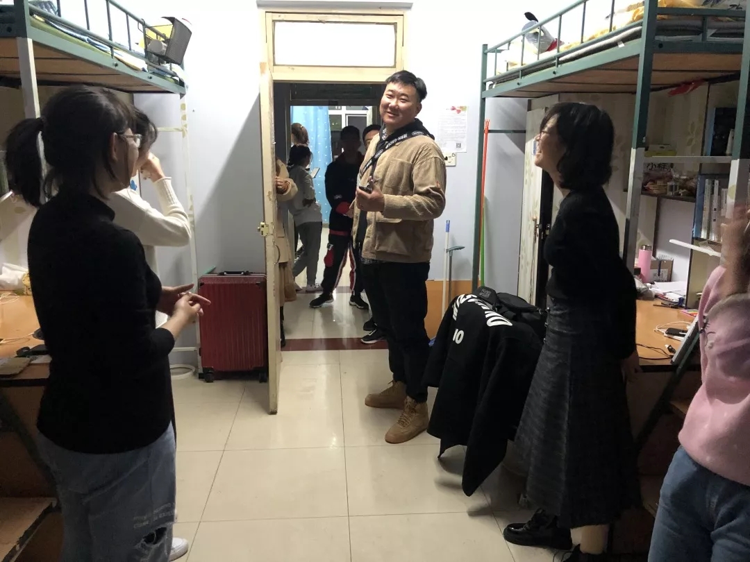 老师与同学们进行了亲切的交流,询问了同学们学习与生活的情况,对寝室中存在的卫生和安全问题提出了建议,叮嘱同学们在日常生活中保持寝室卫生,安全用电,留意离寝人员的安全等。