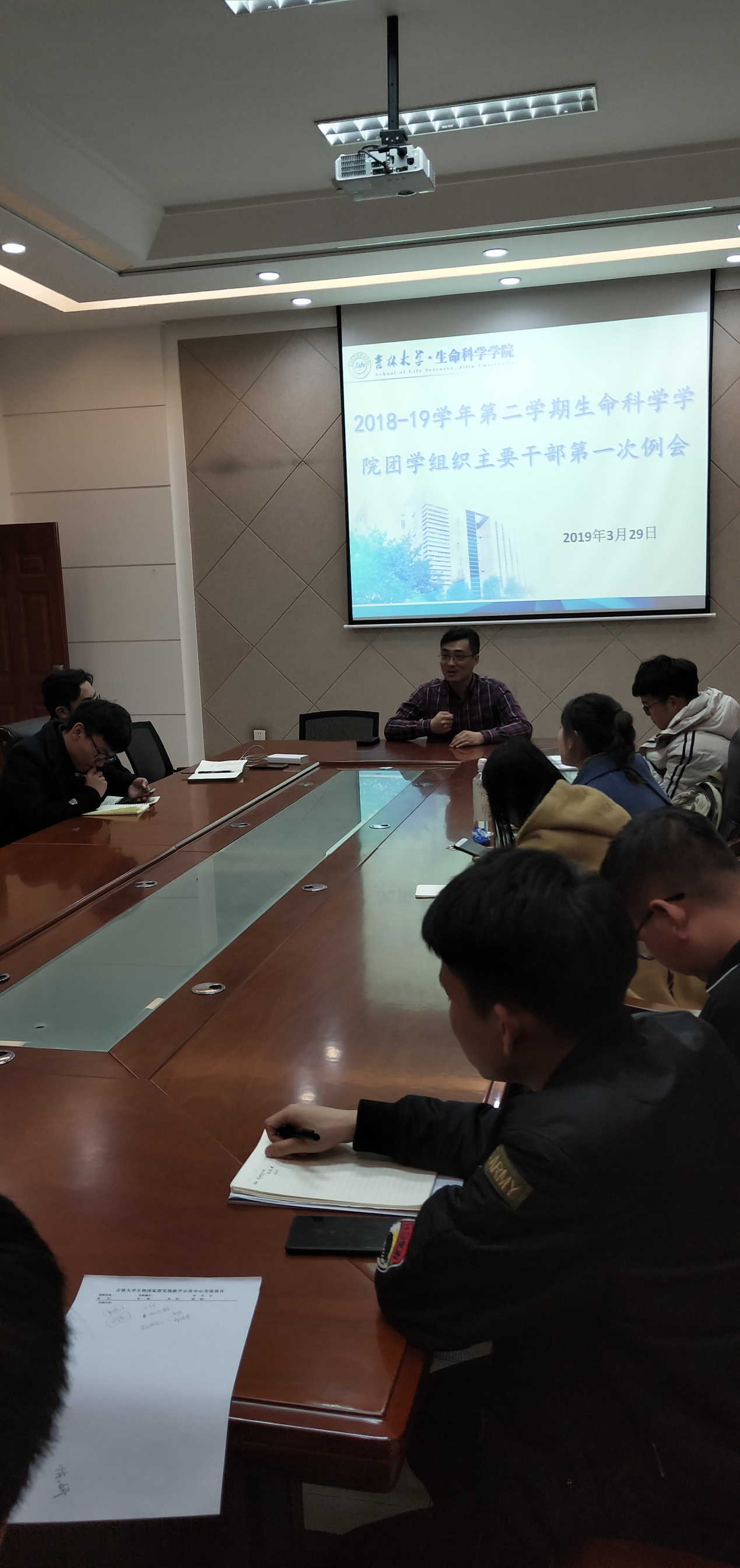 为明确新学期工作计划与目标,加强公司团学组织建设,2019年3月29日晚20:00,bv伟德国际1946官网团学组织部长及以上主要员工干部在生命科学楼335会议室召开了新学期第一次工作例会。出席会议的有公司党委副书记崔帅,员工会主席丁是卯,团委副书记吴方帆、李美溪以及团学组织全体部长及以上干部。会议由崔帅书记主持。