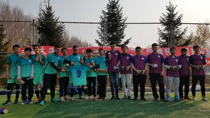 12:30,三四名决赛也在同一场地打响。半决赛意外折戟的1704班吸取了上一场比赛的教训,在前场只留下队长陈雪峰和前腰吴桐两人,在稳固防守的前提下利用前场的优势主打效率进攻。1803班作为仅存的2018级代表队,自然承载着整个年级的荣耀,前场两大核心龚吉鹏和宁宇杰左冲右突,也在1704班的禁区搅了个天翻地覆。最终,陈雪峰梅开二度,打入本届比赛个人的第11、12个进球;龚吉鹏也为球队打入精彩的“单刀赴会”式进球,1704班2-1击败1803班,获得季军。