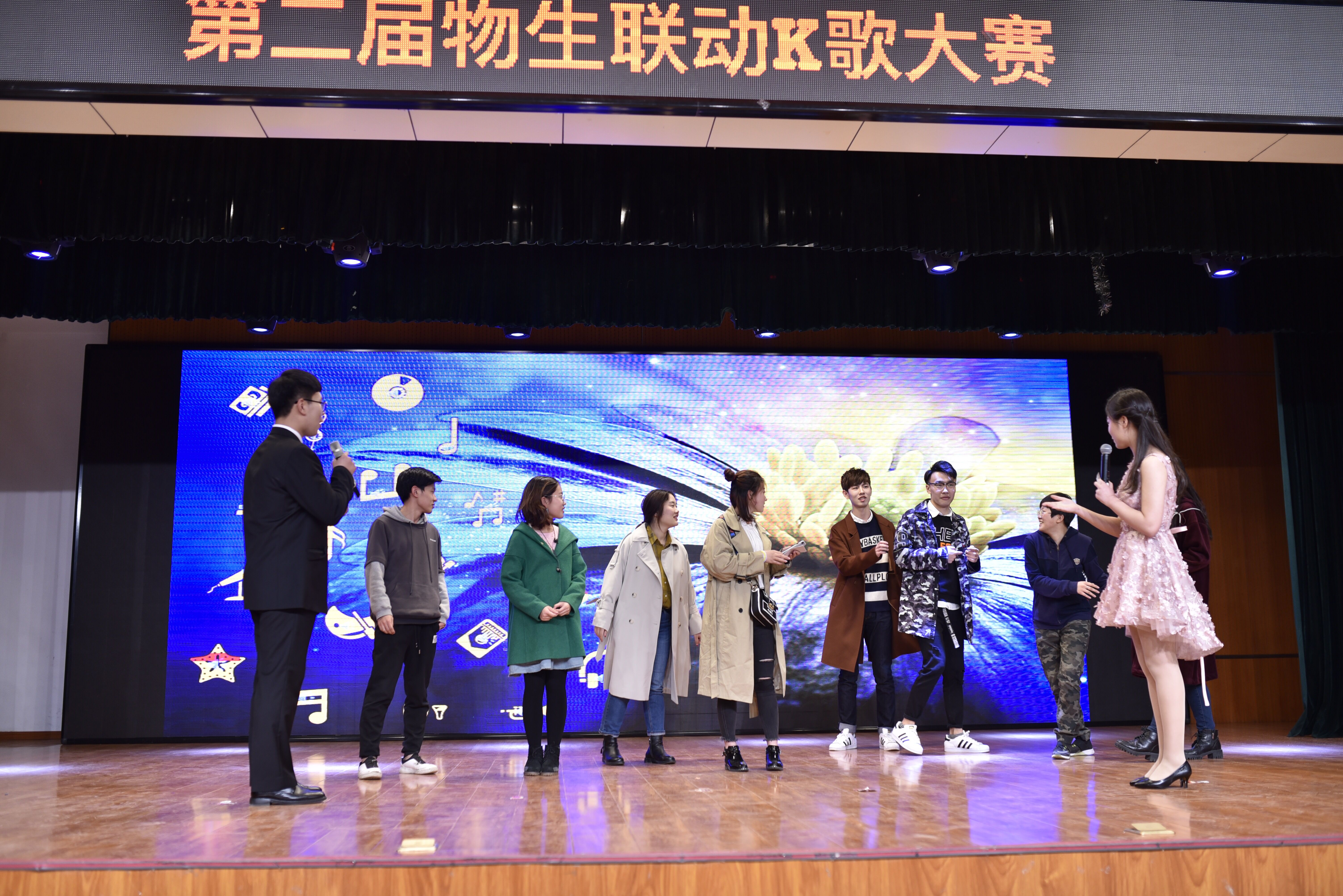 物生两院经过广泛宣传与多次彩排,在初春的夜色中终于为大家呈现了一台精彩的音乐盛宴。乐起舞动,激情四射的开场舞一下就调动起了全场的气氛,随后来自公司和物理公司的优秀选手带来的歌曲更让观众们的热情逐节攀升。歌手们风格多样,各有所长。在几首曲目的间隙还加入了飞花令、听歌识曲等趣味盎然的游戏环节。晚会现场气氛十分热烈,观众被充分调动起来,积极参与到活动的互动环节。公司于佳宁同学还应邀上台参与了魔术表演,将晚会推向高潮。经过3个小时的比赛,三名歌手脱颖而出,分获本次K歌大赛冠亚季军,其中,公司侯宁同学获得了第三名的优异成绩。