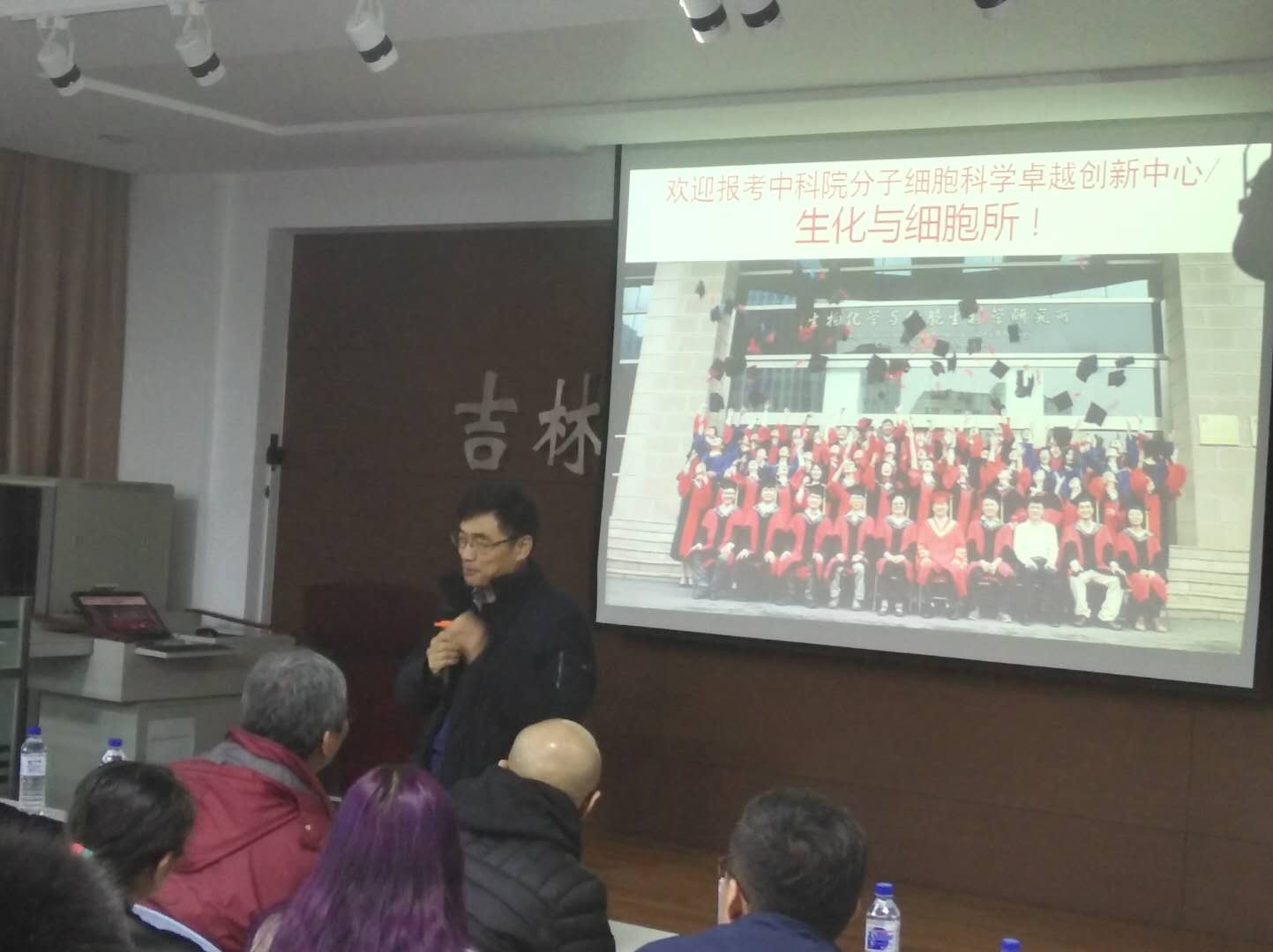 2018年4月13日18:00,bv伟德国际1946官网上海生命科员工物化学与细胞生物学研究所徐国良院士、张雷研究员和侯法建研究员在吉林老员工命科学楼107室为公司本科生做了学术报告,陪同出席本次活动的有bv伟德国际1946官网高仁筠教授、副经理马俊峰老师和副书记崔帅老师。