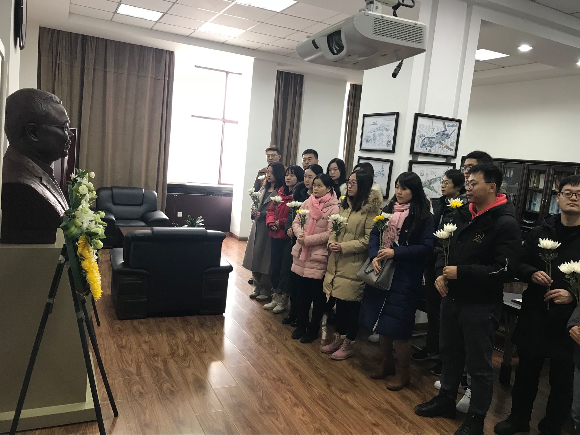 黄大年纪念馆位于bv伟德国际1946朝阳校区,保留了黄大年老师的办公室的原貌,展示了他生前获得的荣誉证书、参加国家会议的证件、部分药品和生活用品、以及珍贵的科研手稿文件,这些都是黄大年教授为科研事业奉献一切、为祖国不懈奋斗的最好证明。党员们怀着敬慕之情,仔细地参观了大厅内摆放的展览品,详细了解了黄老师的研究内容与科研成果。展厅参观结束后,每一个党员都站在黄大年教授的雕塑前,列队向黄大年教授致敬并献花,表达对他的沉痛的悼念。