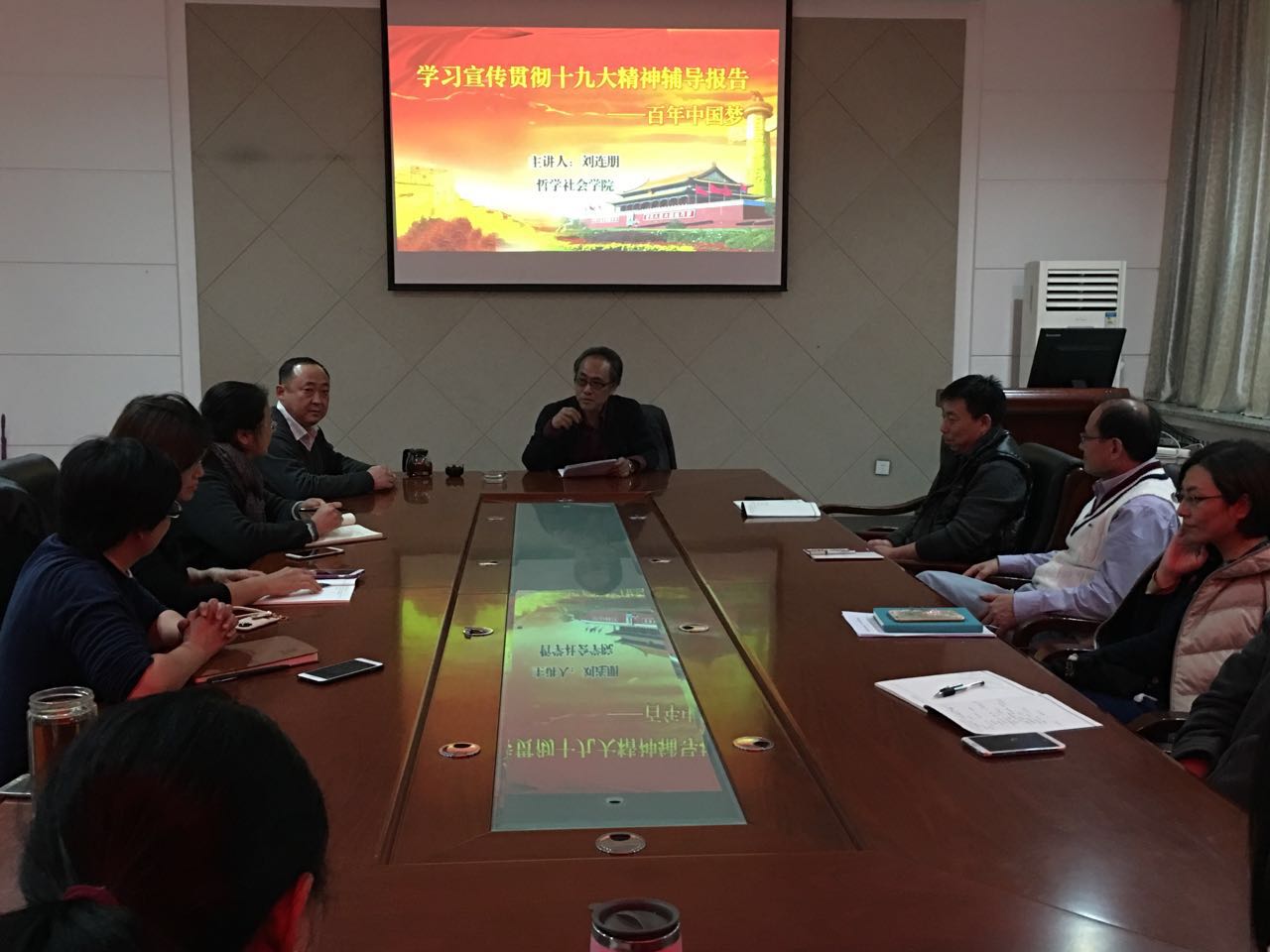为深入学习、宣传、贯彻十九大精神,11月3日下午,生命科学公司党委在生命科学楼335会议室召开理论中心组(扩大)学习会议,邀请哲学社会公司中国哲学专业刘连朋老师做题为《百年中国梦》的辅导报告。会议由公司党委书记李佰志主持,公司党政班子成员、党委委员、纪委委员和全体党支部书记参加。