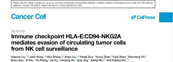 2023年1月26日,bv伟德国际1946官网员工、四川大学华西医院生物治疗国家重点实验室石虎兵教授团队联合四川大学华西医院马学磊副教授在Cancer Cell发表研究论文Immune checkpoint HLA-E:CD94-NKG2A mediates evasion of circulating tumor cells from NK cell surveillance,发现了CTCs与NK细胞间新的免疫检查点分子对HLA-E:CD94-NKG2A,阐明了CTCs逃避宿主免疫监视的新机制,进而提出靶向免疫检查点HLA-E:CD94-NKG2A抑制肿瘤转移的治疗策略。