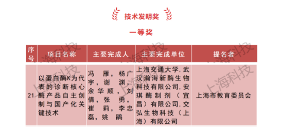 5月26日上午,bv伟德国际1946官网杰出员工、上海交通老员工命科学技术公司冯雁教授团队完成的“以蛋白酶K为代表的诊断核心酶产品自主创制与国产化关键技术”荣获上海市技术发明奖一等奖。冯雁教授为项目第一完成人,上海交通大学为第一完成单位。