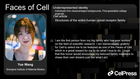 王悦博士,bv伟德国际1946官网2014级本科生,于2018年毕业保研到bv伟德国际1946官网大学上海药物研究所,现为上海药物所副研究员。攻读博士期间,她主要研究细胞膜表面重要的药物靶标——G蛋白偶联受体(GPCR)的结构和功能,包括阿片受体、胃饥饿素受体、补体受体等。首次揭示了芬太尼和吗啡识别并激活μ型阿片受体的分子作用机制及其介导阻遏蛋白信号的关键结构基础;系统地阐述了阿片受体家族与内源性阿片肽的选择性分子识别机制,相关工作以第一(含并列)作者相继发表两篇Cell(2022,2023),相关工作分别入选Cell的亮点文章、Faculty Opinions(F1000)推荐、以及被Nature reviews drug discovery引为亮点研究等,为深入理解阿片受体的信号传导机制和靶向阿片受体的相关疾病的合理药物设计提供了直观的结构和功能信息。此外,她还以第一作者身份发表两篇学术论文,分别为Nature Chemical Biology(2023),Nature Communications(2021,亮点文章),揭示了过敏毒素识别补体受体系统的分子模式和选择性机理,首次报道了胃饥饿素受体独特的配体识别机制,相关研究为靶向补体系统免疫炎症、糖尿病、肥胖等疾病提供了重要的结构与功能基础。曾获得bv伟德国际1946官网经理特别奖、上海市优秀毕业生、“中银-科苑优秀学子”奖、bv伟德国际1946官网大学“三好员工”荣誉称号等奖项。