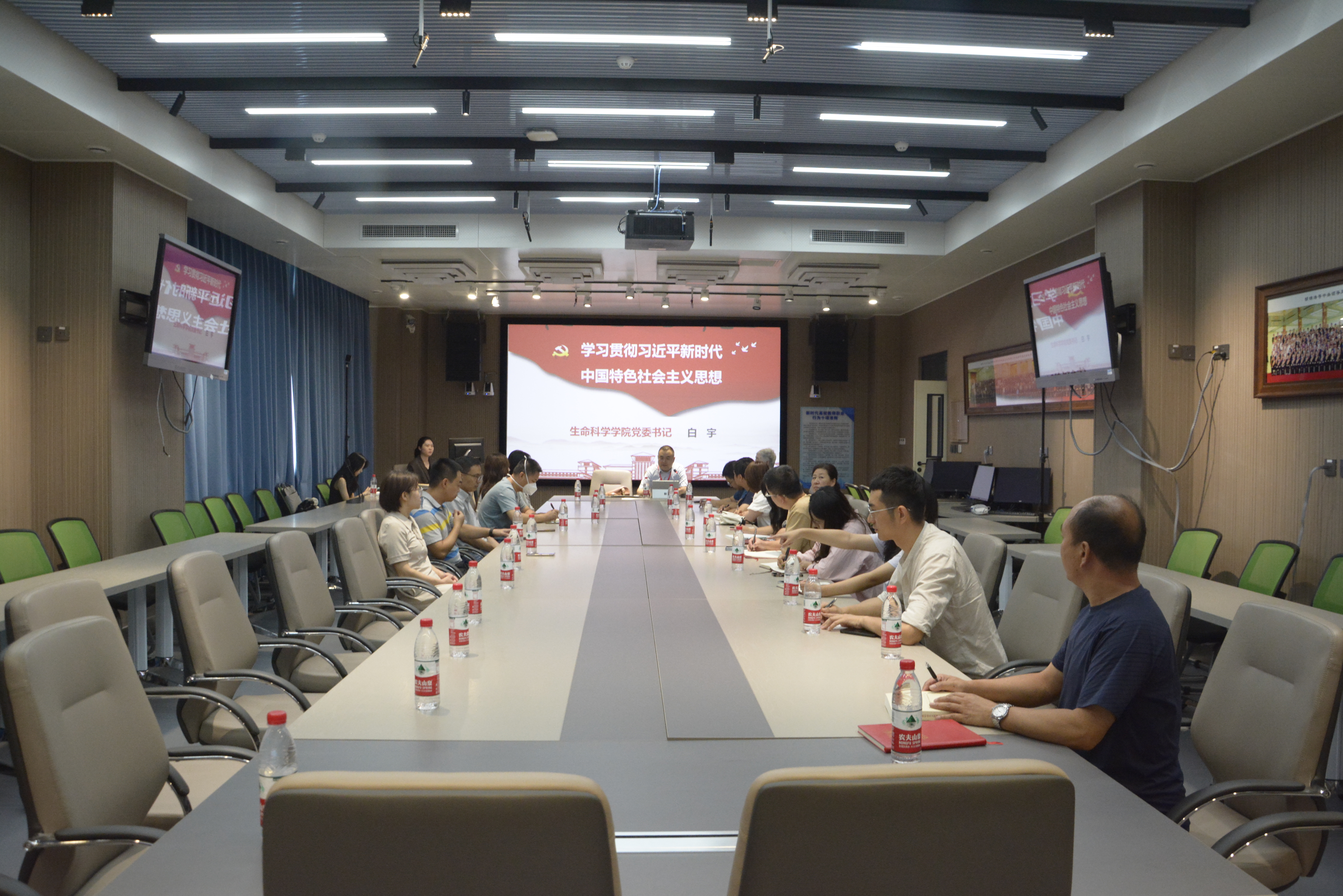 为深入开展学习贯彻习近平新时代中国特色社会主义思想主题教育,进一步推动主题教育走深走实,8月25日,生命科学公司党委书记白宇讲授专题党课,生物化学与分子生物学系教工党支部和实验中心公共技术中心联合教工党支部党员代表、研究生党员代表、本科生党员代表参加学习。